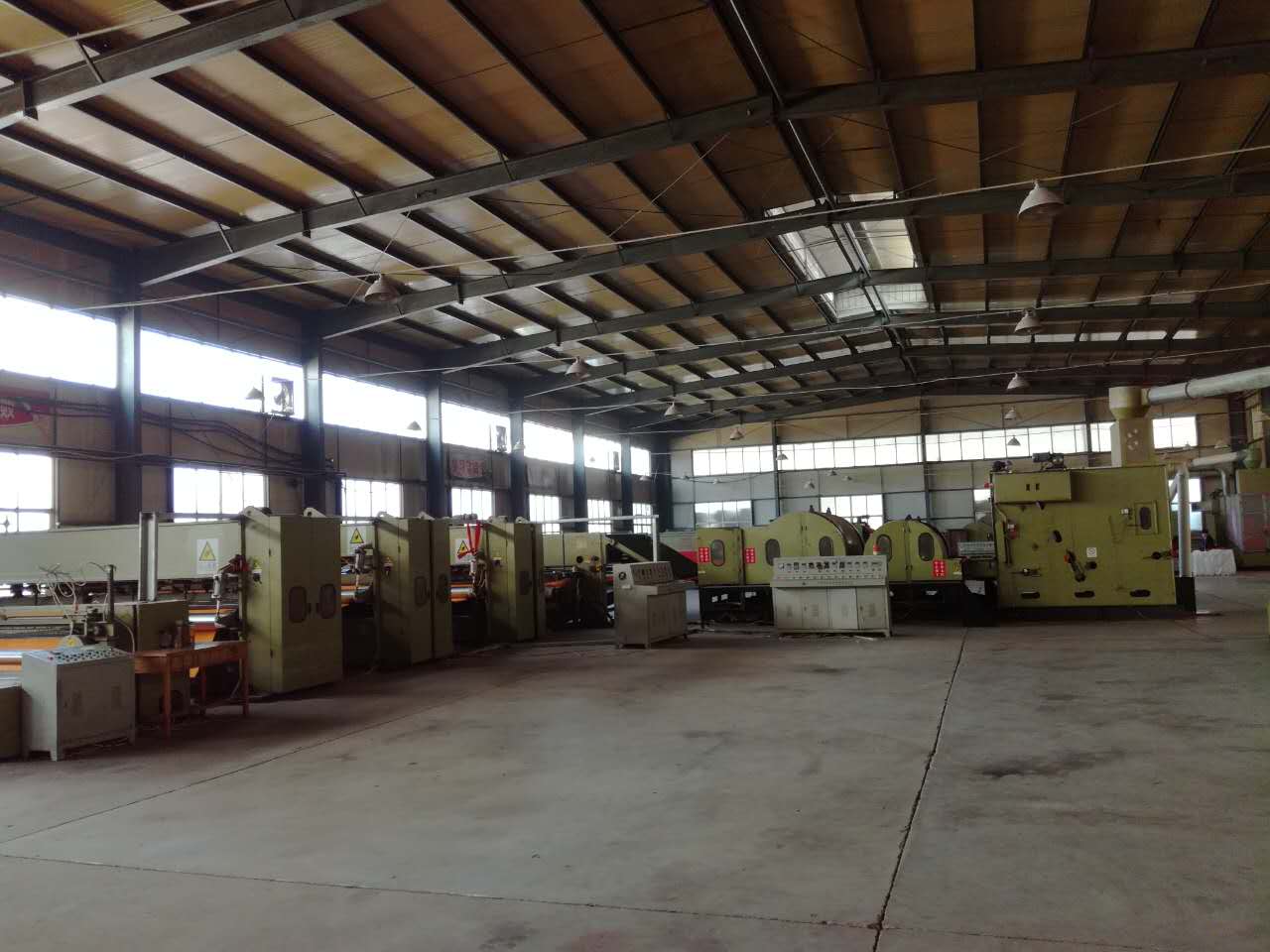 公司總投資1億余元,首期工程已完成投資3000萬元。現(xiàn)已建設標準廠房15000余平方米、引進多條無紡布生產線。其中,針刺無紡線4條、起絨機兩臺、電腦提花機1臺、條紋機1臺、地毯整理烘干定型線兩套。